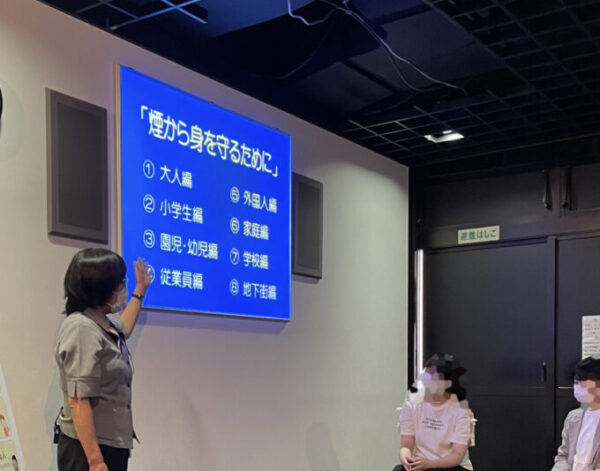 煙で周囲が見づらい中、安全に逃げる方法を学び、実践しました。
