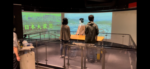 地震を再現できる特別な装置の上で、東日本大震災と同じ揺れを体験しました。