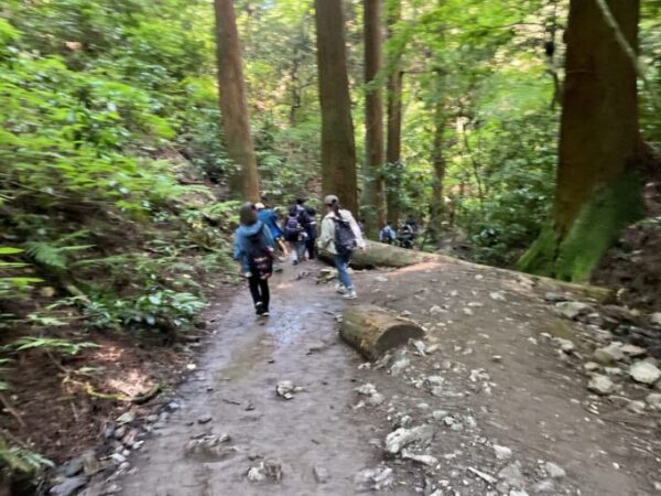 おひさまさんさん☀いい天気のなか、班ごとに登山スタート!