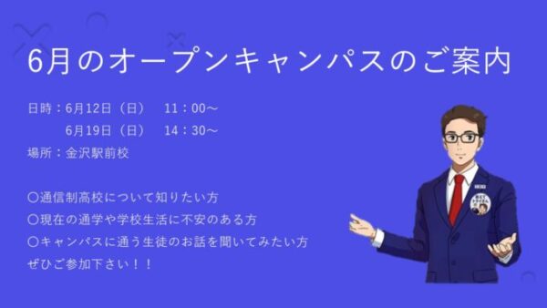 6月のオープンキャンパスのお知らせです☆☆☆