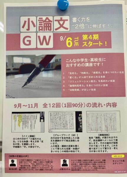 9月6日より、『小論文対策GW(第4期)』が行われます!
