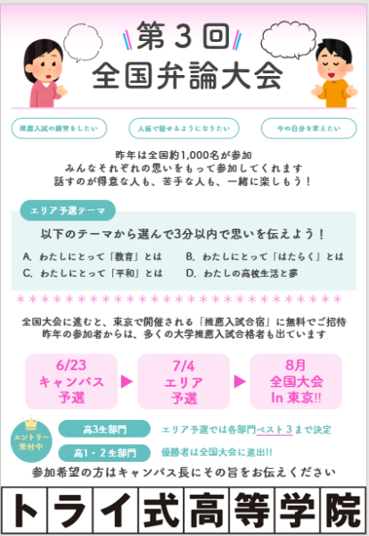 トライ式高等学院は只今全国弁論大会で盛り上がっております。