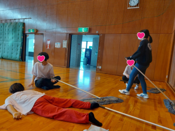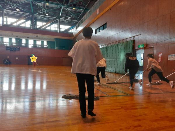 ということで、試合後にやったモップがけ競争の写真でお楽しみください。