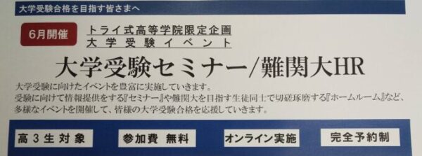 「大学受験セミナー/難関大HR」を開催します🙋!!