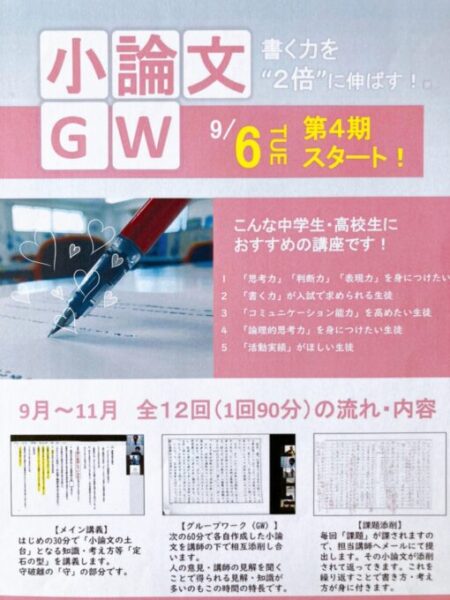 9/6より開始する「第4期小論GW」で、書くことを得意にしてみませんか!?