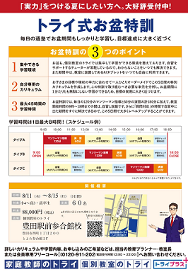 トライでは、毎年お盆期間に「お盆特訓」を開催しています!
