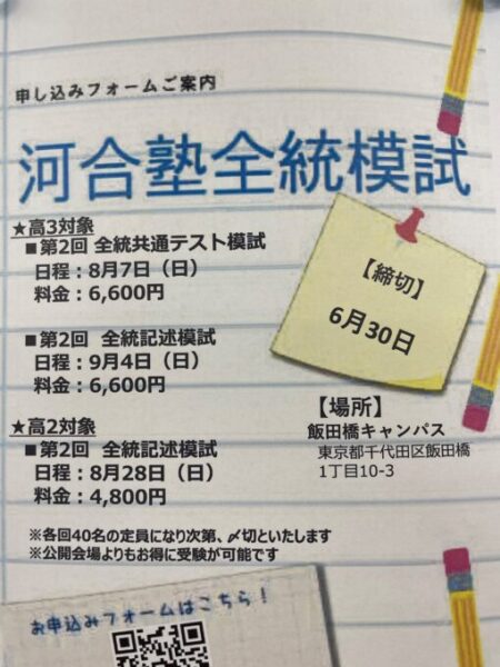 キャンパスから「河合塾全統模試」に申し込めるのを皆さんご存じですか?