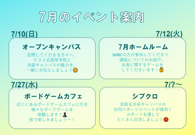 本日は7月のイベントについてご案内します♪