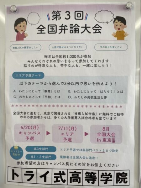 弁論のさらに詳しいポスターも掲示してありますのでぜひ見てみてください~~♩