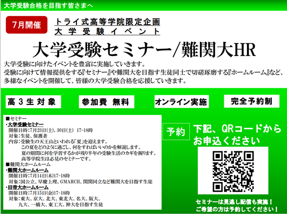 トライでは、国公立、早慶上理、GMARCH、関関同立などの難関校に生徒を合格させてきた、