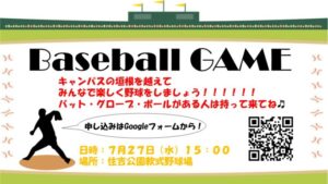 7月27日に予定している野球大会まで残り1週間となりました!