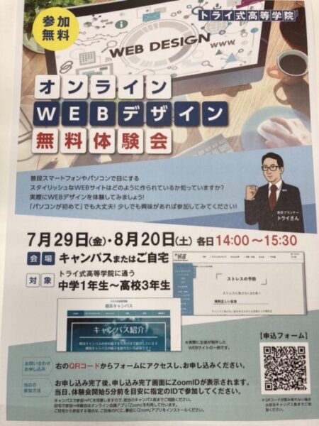 トライ式高等学院では7月29日(金)と8月20日(土)に