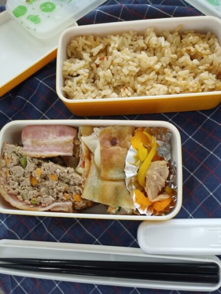 お弁当を持参する人、コンビニやパン屋さんで買ってくる人、