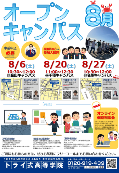 個別面談・オープンキャンパスのご予約を随時、承っております。