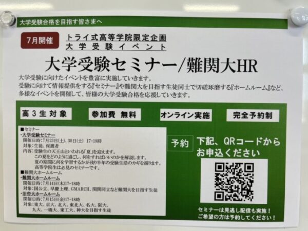大学受験セミナーについてお知らせします。