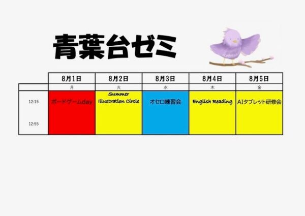 8月1日からの青葉台ゼミスケジュールです。