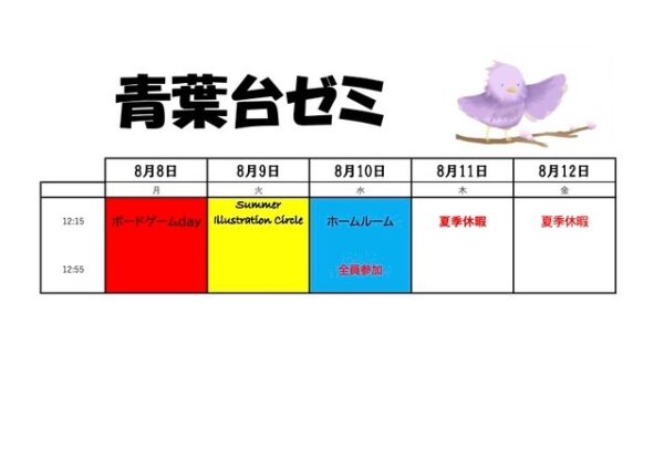 8月8日からの青葉台ゼミスケジュールです。