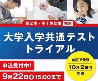 河合塾では、高校1〜2年生を対象に、無料で大学入学共通テストのトライアル模試を受けることができます(‘▽’)