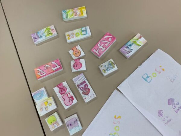 彫刻刀を器用に使いこなし、素敵なハンコが出来上がりました。