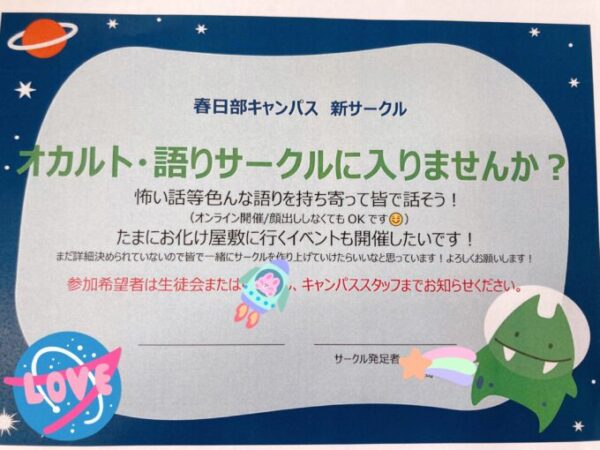 突然ですが、春日部キャンパス 新サークル発足します!!!その名も