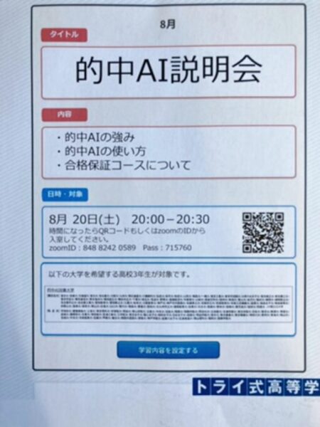 ★8月20日(土)20:00~20:30「的中AI説明会」★