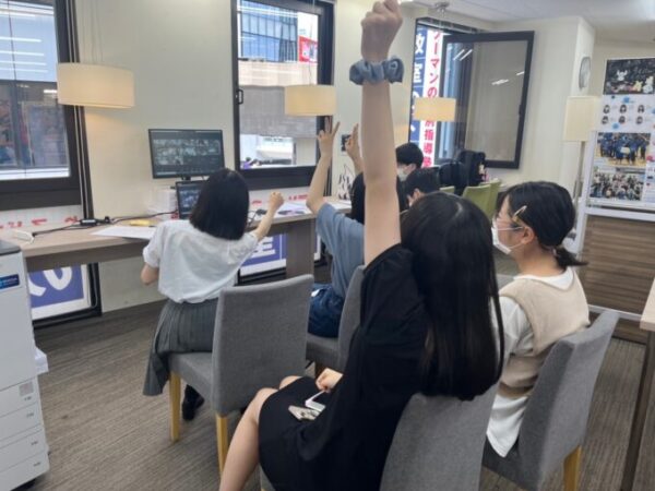 ZOOMを使って都心のキャンパスが集まってキャンパス対抗のクイズや紙コップタワーチャレンジをしました(^^)