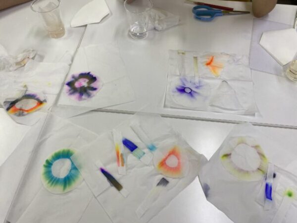 水性ペンに含まれる様々な色のインクが分かれていくことによっておこる現象だそうです!