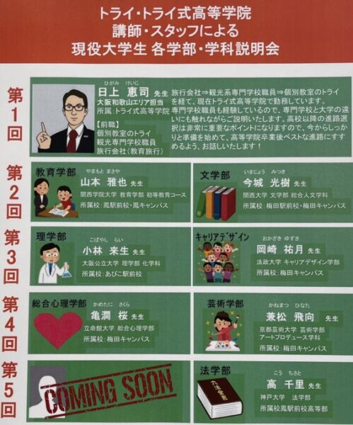 オンライン大学説明会第2回~第5回は現役の大学生による各学部・学科説明になります。