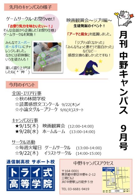 先月のキャンパスの様子や、その月のイベント情報などを今後も毎月更新していきます。良かったらチェックしてくださいね!