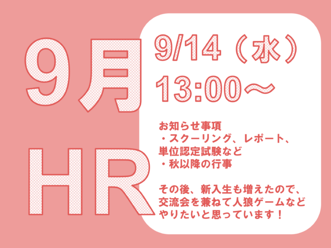 9月のホームルームについてご案内いたします!