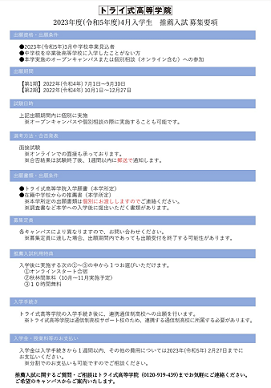 トライ式高等学院では、2023年度4月入学生の推薦入試がスタートしています。