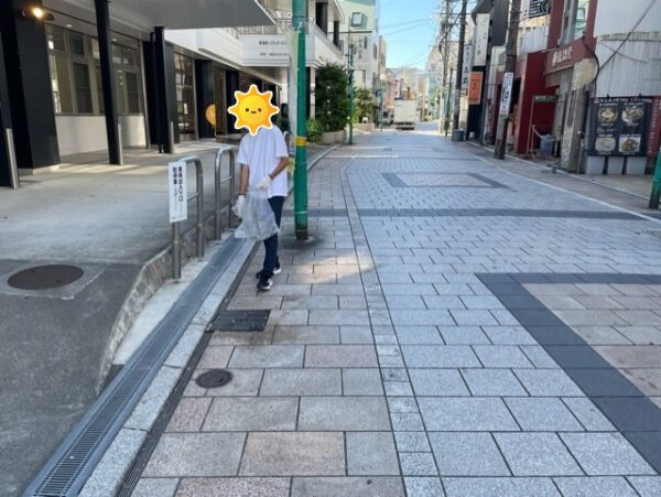飲食店が多い通りのため、タバコの吸い殻がなんとおおいことか、、、