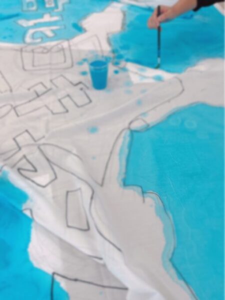 高校二年生が中心になって、横断幕の製作が始まりました。
