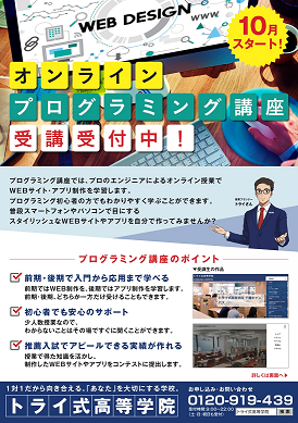 トライ式高等学院では、これまで「プログラミングコース」というコースを数期にわたって行ってきましたが、このたび10月からプログラミングコースの6期がスタートすることになりました!!