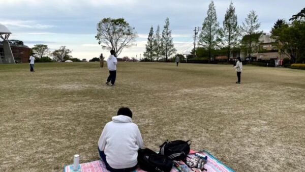 公園ではバドミントンとフリスビーをしました!
