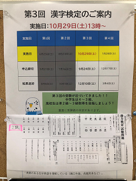 以下の日程で第3回漢字検定を行いますので、受検希望の方はキャンパス職員までお知らせください✏️