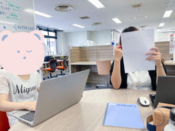 キャンパス長と志望理由書の最終チェックをしている様子です。