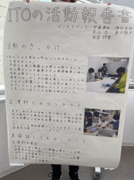 生徒の伊藤くんが社長を務める「ITO」の活動報告です👍長野県王滝村の町おこしプロジェクトの活動報告をおこなってくれました🍀社長として活動し、たくさんの学びがあったようです😉
