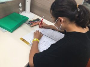 1日の勉強時間は5時間くらいで、連携校のレポート課題をしたり、マンツーマン指導で出されている宿題をしたりしています。