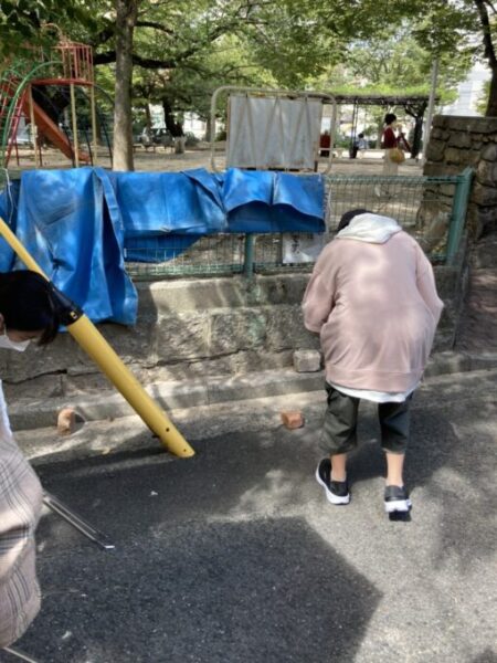 台風で暴風が吹き荒れたためか、枝がたくさん落ちていたり、どこかから飛んできたのか大きいゴミも多くありました。そしていつもの公園のベンチ周辺には、いつものように大量のタバコの吸い殻やお菓子の袋、フォークや割りばしの袋。。。