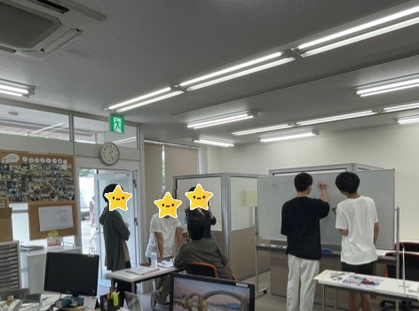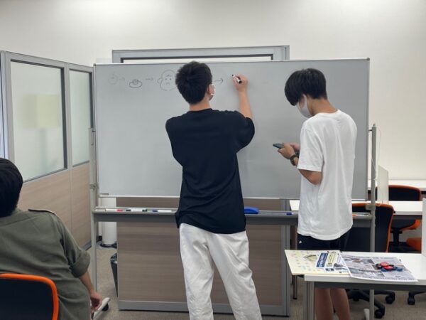 みんなでホワイトボードをどういうデザインにするかを話し合っています(#^.^#)