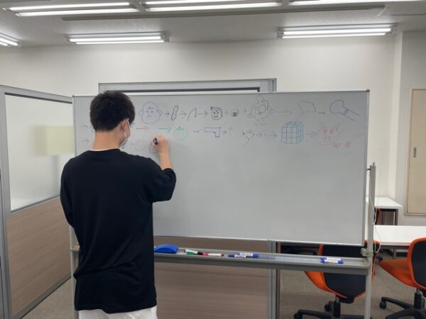 ホワイトボード装飾が、絵しりとりになってるじゃないですか!!