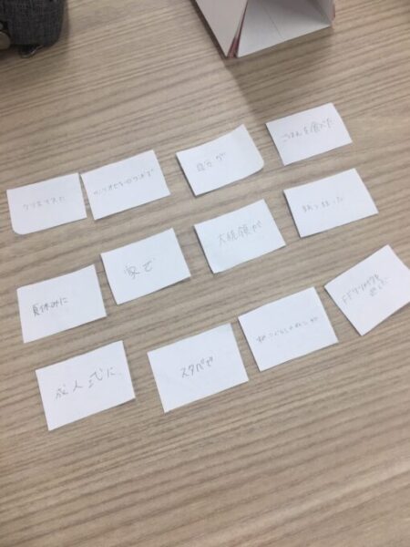 この日は、だれが・いつ・どこで・なにをした?ゲームでは絶えず笑い声が響いていました☆