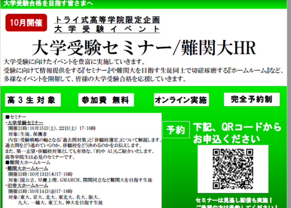 高校三年生対象・参加費無料!!