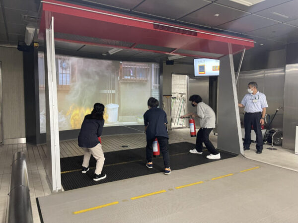 消火器の使い方を学んだり、