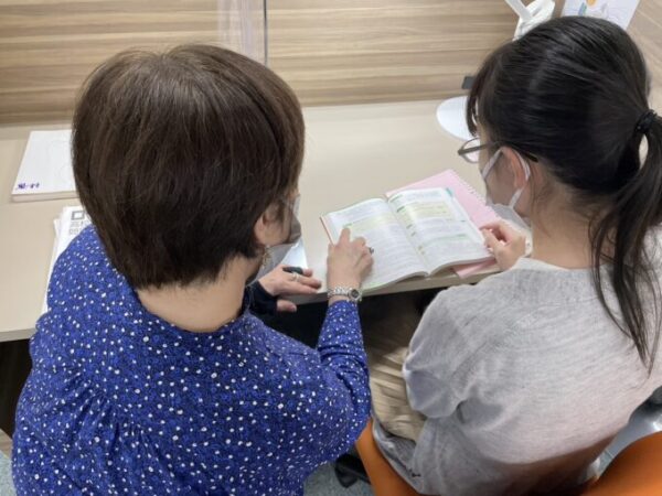 仲の良いKさんに参考書の相談をする様子。