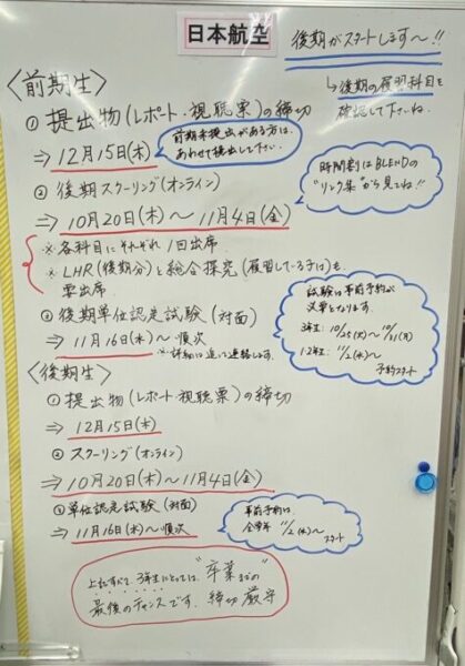 スクーリングの日程が出ましたので