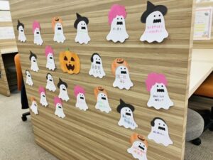 キャンパスも秋らしいハロウィンの掲示を