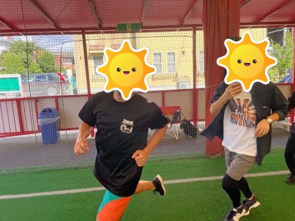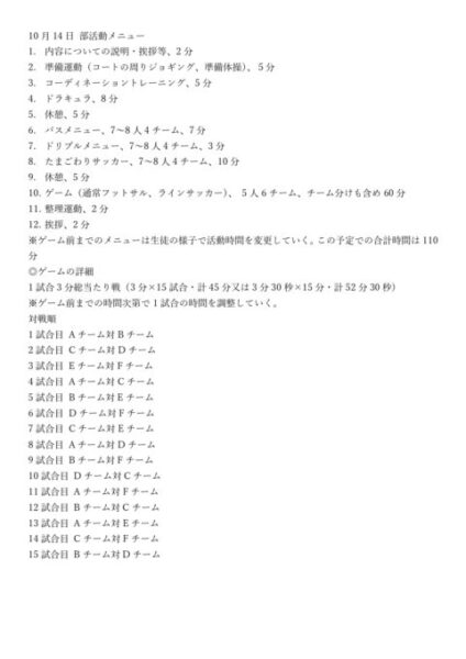 サッカー、フットサルが初めてという生徒もいましたので、静岡キャンパスの生徒が練習メニューを考えてくれてました。
