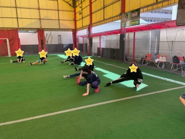 ケガをしないように準備運動から!
